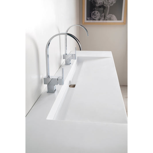 James Martin Vanities Lorelai 60" Bright White Double Vanity With Single Hole 3 CM White Zeus Quartz Top & Backsplash
