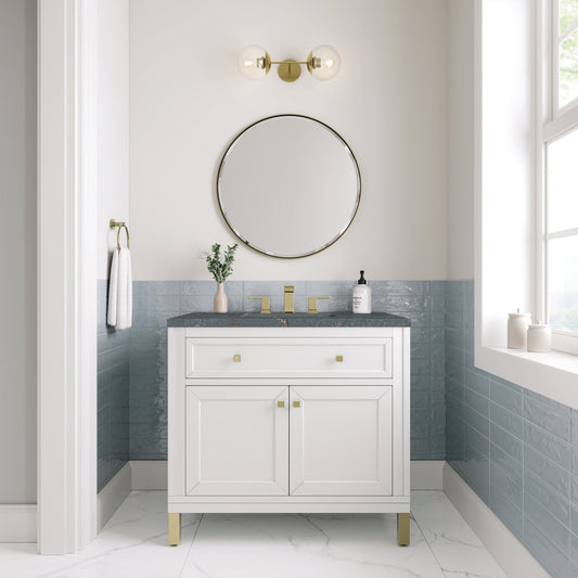 James Martin Vanities Chicago 36" Glossy White Single Vanity With 3 cm Parisien Bleu Top