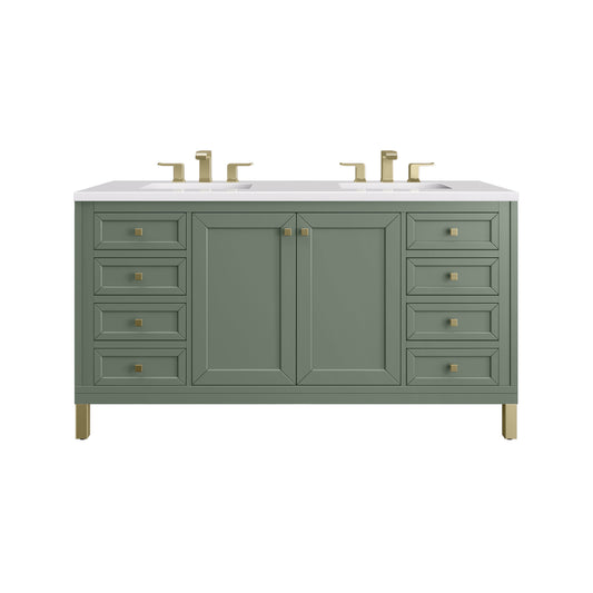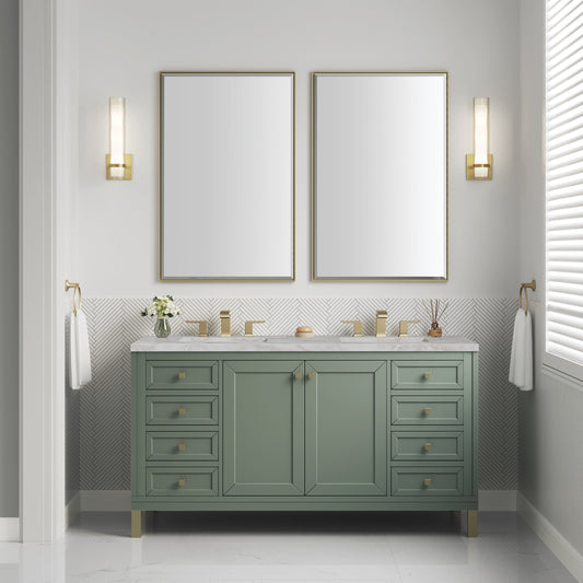 James Martin Vanities Chicago 60" Smokey Celadon Double Vanity With 3 cm White Zeus Top