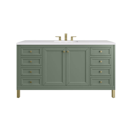 James Martin Vanities Chicago 60" Smokey Celadon Single Vanity With 3 cm White Zeus Top