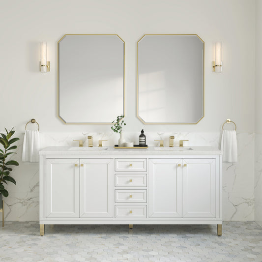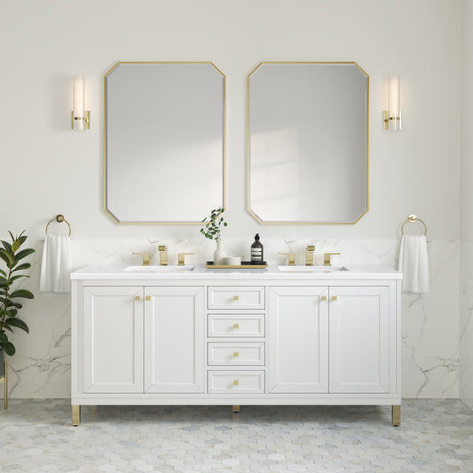 James Martin Vanities Chicago 72" Glossy White Double Vanity With 3 cm White Zeus Top