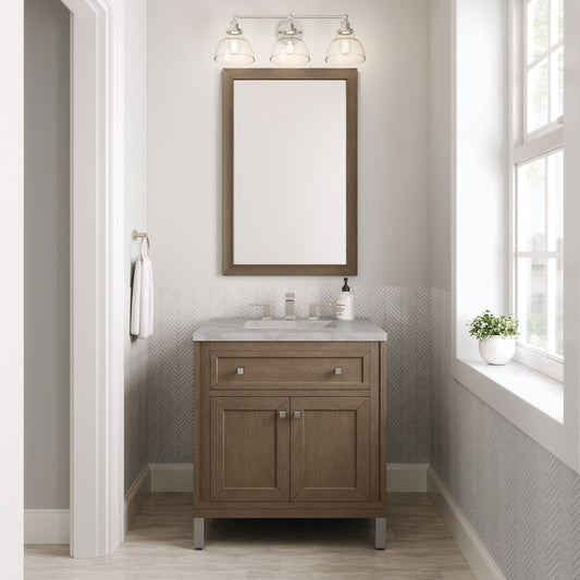 James Martin Vanities Chicago 30" Whitewashed Walnut Single Vanity With 3 cm Victorian Silver Quartz Top