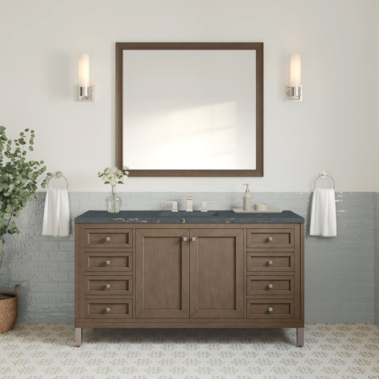 James Martin Vanities Chicago 60" Whitewashed Walnut Single Vanity With 3 cm Parisien Bleu Quartz Top