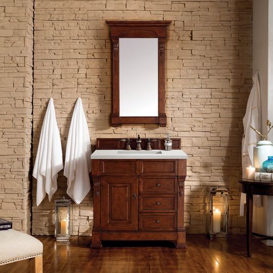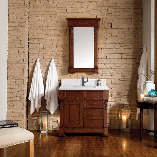 James Martin Vanities Brittany 36" Warm Cherry Single Vanity With Single Hole 3 cm White Zeus Quartz Top & Backsplash