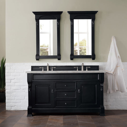 James Martin Vanities Brittany 60" Antique Black Double Vanity With Single Hole 3 cm White Zeus Quartz Top & Backsplash