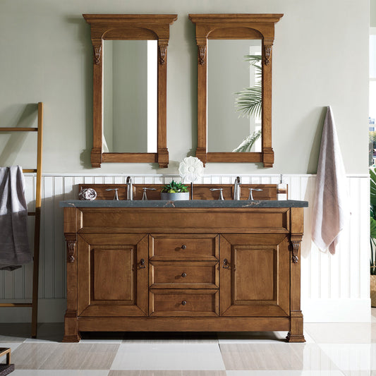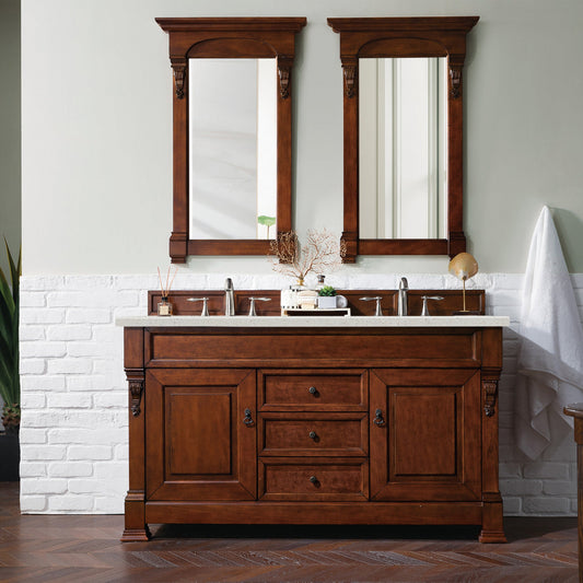 James Martin Vanities Brittany 60" Country Oak Double Vanity With 3 cm Victorian Silver Quartz Top