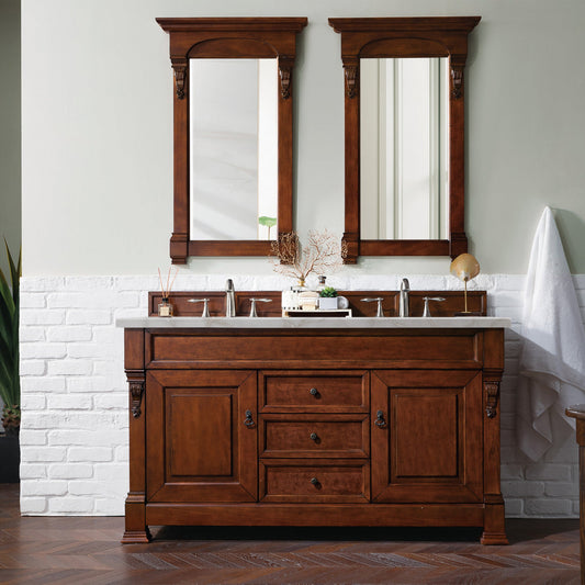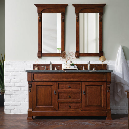 James Martin Vanities Brittany 60" Warm Cherry Double Vanity With 3 cm Parisien Bleu Quartz Top