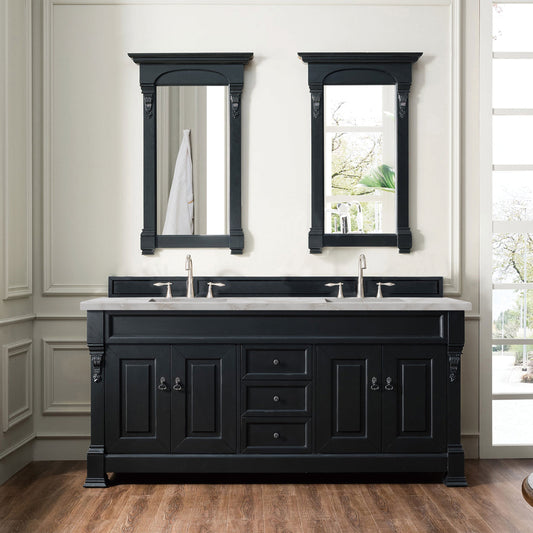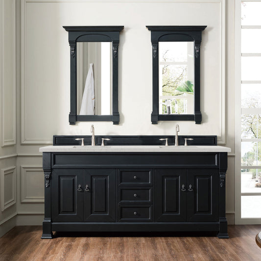 James Martin Vanities Brittany 72" Antique Black Double Vanity With Single Hole 3 cm White Zeus Quartz Top & Backsplash
