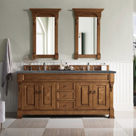 James Martin Vanities Brittany 72" Country Oak Double Vanity With 3 cm Victorian Silver Quartz Top