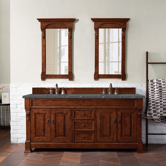James Martin Vanities Brittany 72" Warm Cherry Double Vanity With 3 cm Parisien Bleu Quartz Top