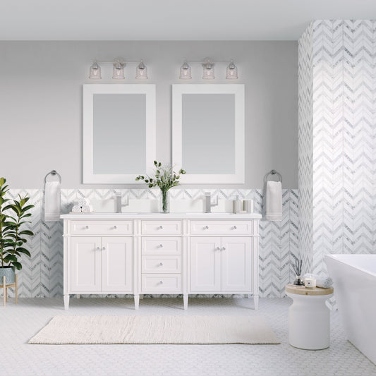 James Martin Vanities Brittany 60" Bright White Double Vanity With Single Hole 3 cm White Zeus Quartz Top & Backsplash