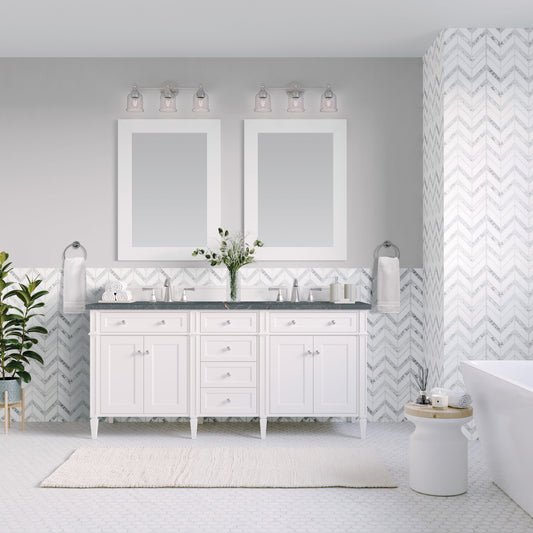 James Martin Vanities Brittany 60" Bright White Double Vanity With 3 cm Parisien Bleu Quartz Top