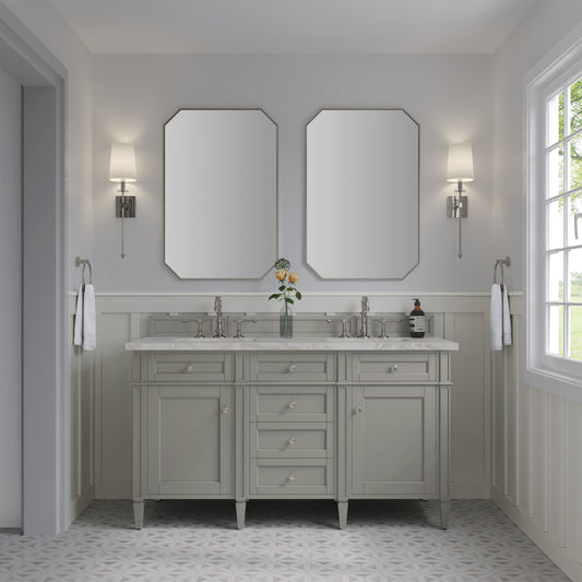 James Martin Vanities Brittany 60" Bright White Double Vanity With 3 cm Victorian Silver Quartz Top