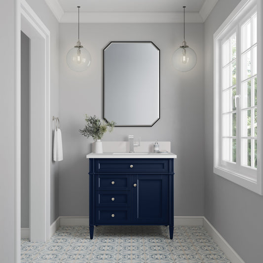 James Martin Vanities Brittany 36" Victory Blue Single Vanity With Single Hole 3 cm White Zeus Quartz Top & Backsplash