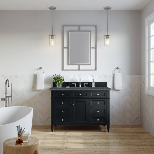 James Martin Vanities Brittany 48" Black Onyx Single Vanity With 3 cm Victorian Silver Quartz Top