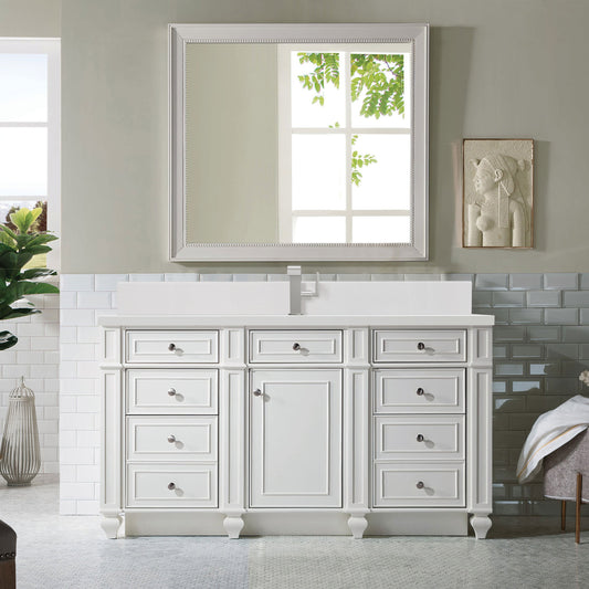 James Martin Vanities Bristol 60" Bright White Single Vanity With Single Hole 3 cm White Zeus Quartz Top & Backsplash