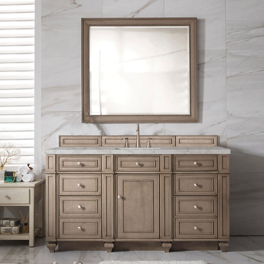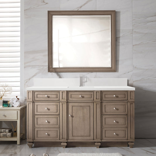 James Martin Vanities Bristol 60" Whitewashed Walnut Single Vanity With 3 cm Victorian Silver Quartz Top