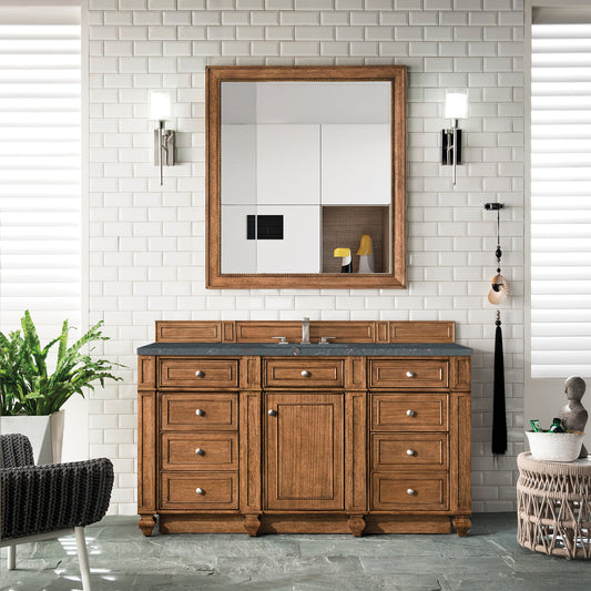 James Martin Vanities Bristol 60" Saddle Brown Single Vanity With 3 cm Parisien Bleu Quartz Top