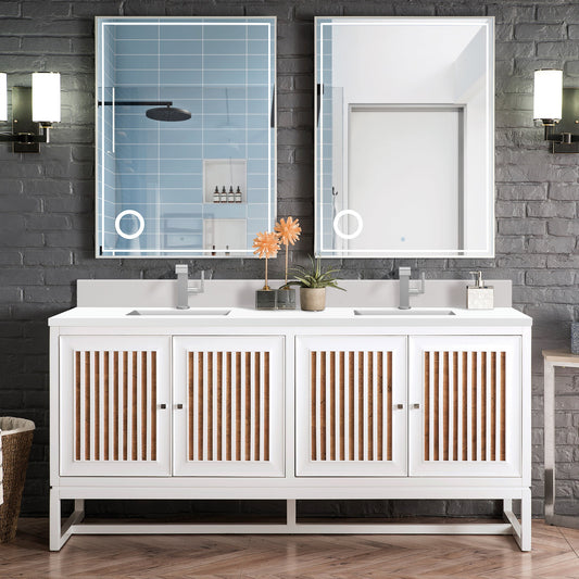 James Martin Vanities Athens 72" Glossy White Double Vanity With Single Hole 3 cm White Zeus Quartz Top & Backsplash
