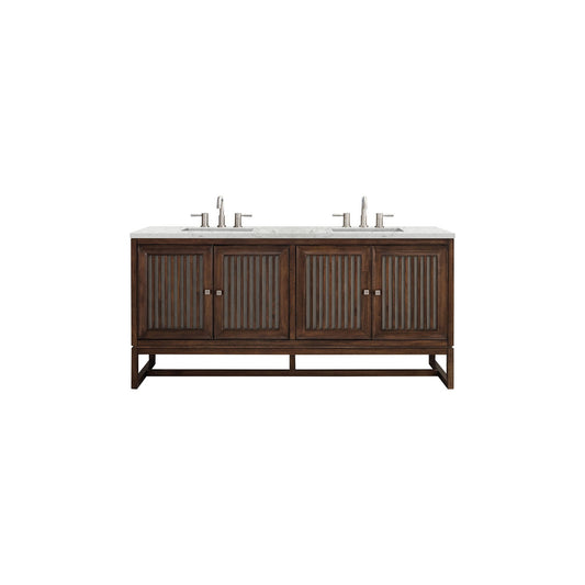 James Martin Vanities Athens 72" Mid Century Acacia Double Vanity Cabinet With 3 cm Eternal Serena Top