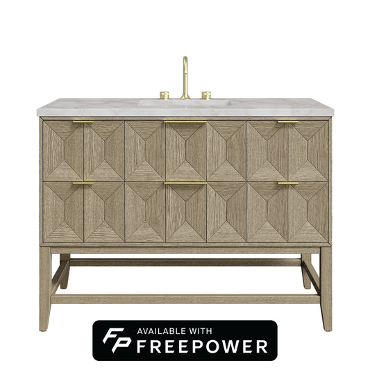 James Martin Vanities Solene 48" Seaside Oak Single Vanity With 3cm Ethereal Noctis Silestone Top With FreePower Wireless Charger