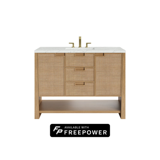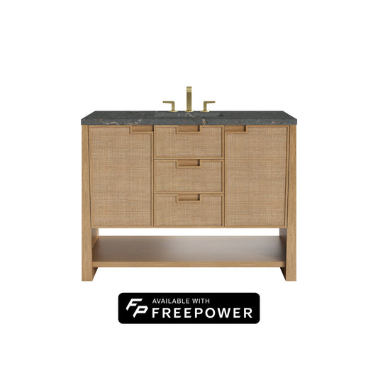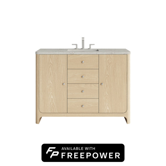 James Martin Vanities Solene 48" Seaside Oak Single Vanity With 3cm Eternal Jasmine Pearl Silestone Top With FreePower Wireless Charger