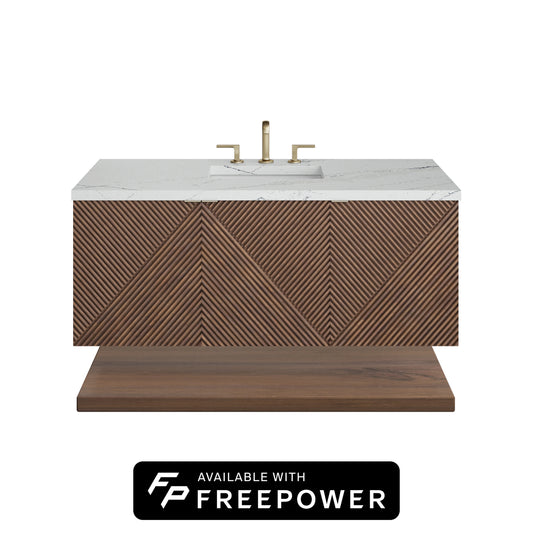James Martin Vanities Marcello 48" Chestnut Single Vanity With 3cm Ethereal Noctis Silestone Top With FreePower Wireless Charger