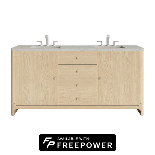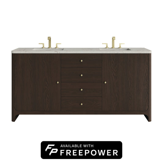 James Martin Vanities Gracyn 72" Coastal Driftwood Double Vanity With 3cm White Zeus Quartz Widespread Top