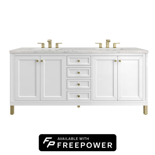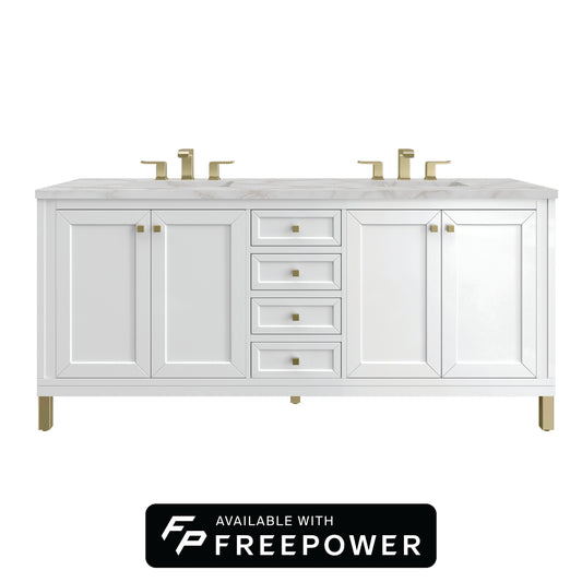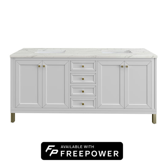 James Martin Vanities Chicago 72" Glossy White Double Vanity With 3cm White Zeus Silestone Top
