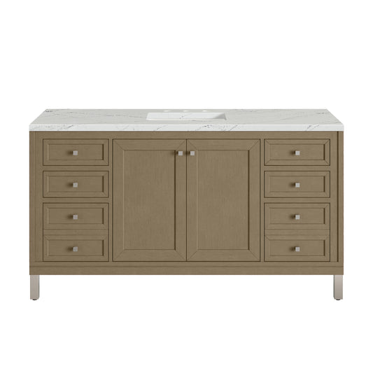 James Martin Vanities Chicago 60" Walnut Whisper Single Vanity With 3cm Eternal Jasmine Pearl Silestone Top