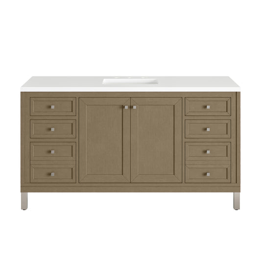 James Martin Vanities Chicago 60" Walnut Whisper Single Vanity With 3cm White Zeus Silestone Top