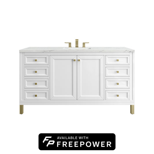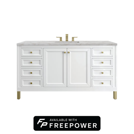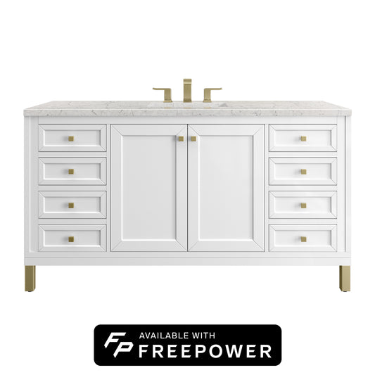 James Martin Vanities Chicago 60" Glossy White Single Vanity With 3cm Eternal Jasmine Pearl Silestone Top With FreePower Wireless Charger
