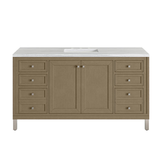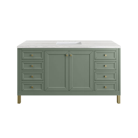 James Martin Vanities Chicago 60" Smokey Celadon Single Vanity With 3cm Eternal Jasmine Pearl Silestone Top