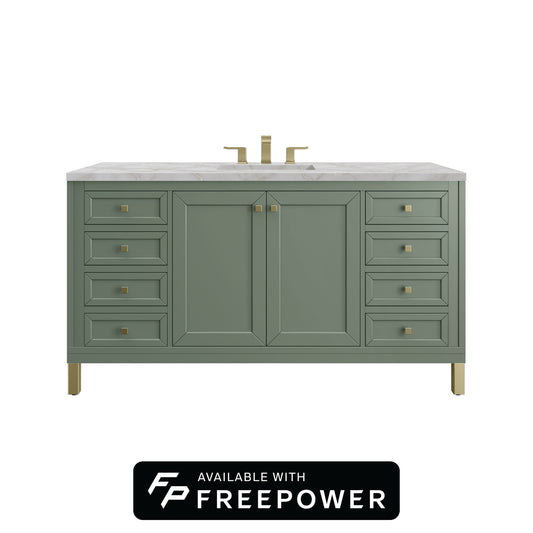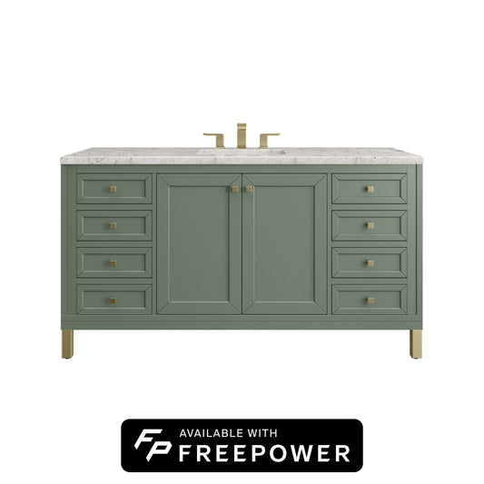 James Martin Vanities Chicago 60" Smokey Celadon Single Vanity With 3cm Eternal Jasmine Pearl Silestone Top With FreePower Wireless Charger