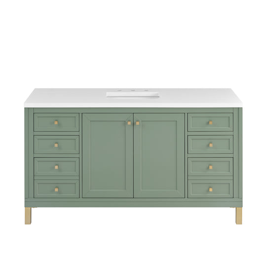 James Martin Vanities Chicago 60" Smokey Celadon Single Vanity With Single Hole 3cm White Zeus Silestone Top and Backsplash