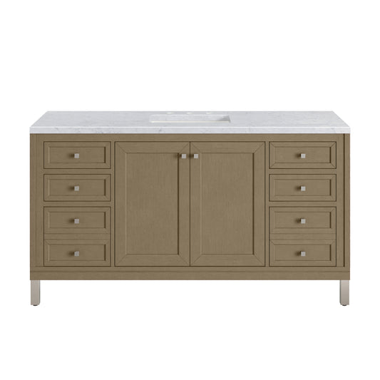 James Martin Vanities Chicago 60" Walnut Whisper Single Vanity With 3cm Carrara Marble Top