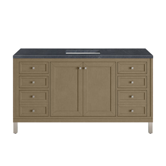 James Martin Vanities Chicago 60" Smokey Celadon Single Vanity With 3cm Ethereal Noctis Silestone Top