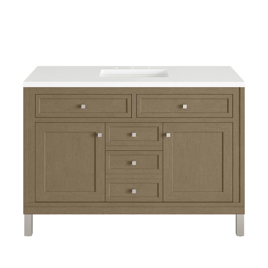 James Martin Vanities Chicago 48" Walnut Whisper Single Vanity With 3cm White Zeus Silestone Top