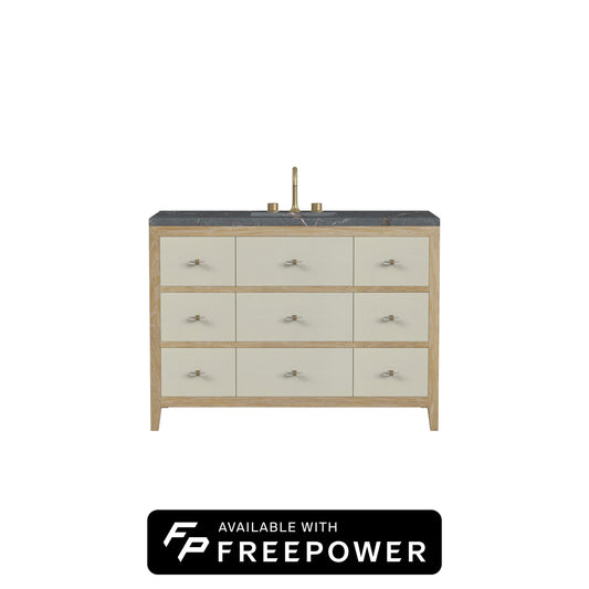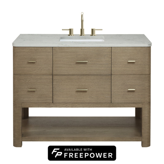 James Martin Vanities Solene 48" Seaside Oak Single Vanity With 3cm Victorian Silver Silestone Top With FreePower Wireless Charger