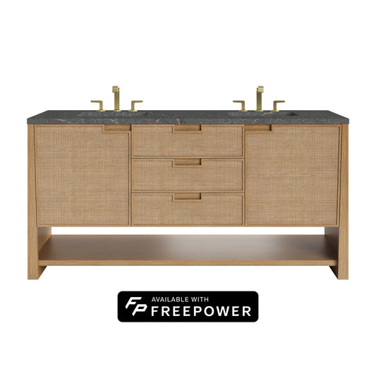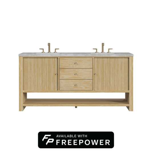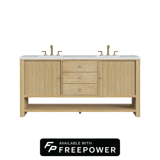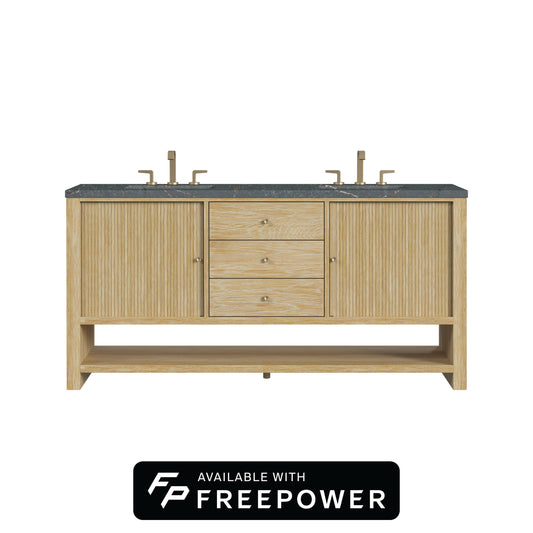 James Martin Vanities Marigot 72" Sunwashed Oak Double Vanity With 3cm Ethereal Noctis Silestone Top With FreePower Wireless Charger
