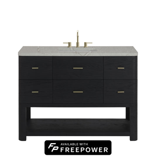 James Martin Vanities Lucian 48" Carbon Oak Single Vanity With 3cm Victorian Silver Silestone Top With FreePower Wireless Charger