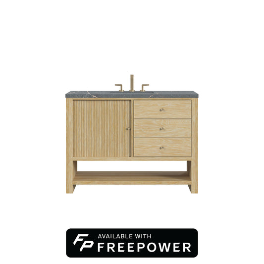 James Martin Vanities Marigot 48" Sunwashed Oak Single Vanity With 3cm Ethereal Noctis Silestone Top With FreePower Wireless Charger