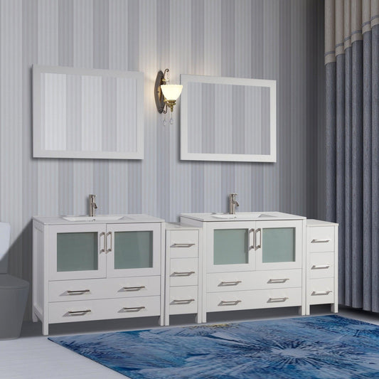 Vanity Art Brescia 96" Double White Freestanding Modern Bathroom Vanity Set With Ceremic Top, 2-Side Cabinets and 2 Mirrors