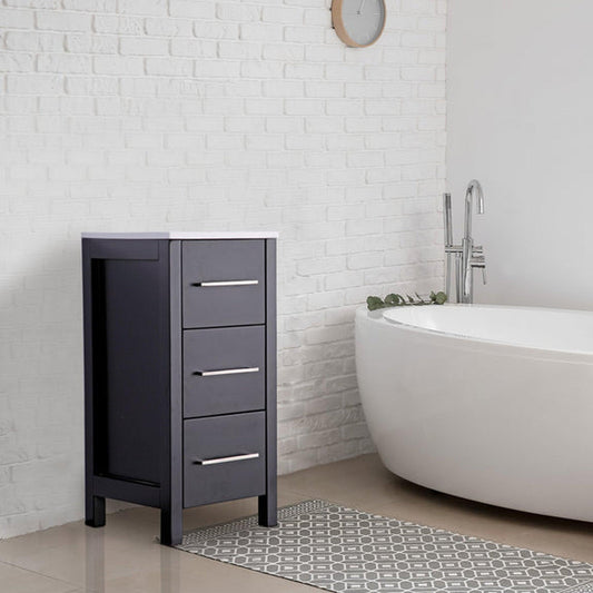 Vanity Art VA3112 12" Gray Freestanding Vanity Cabinet With Engineered Marble Top and 3-Soft Closing Drawers