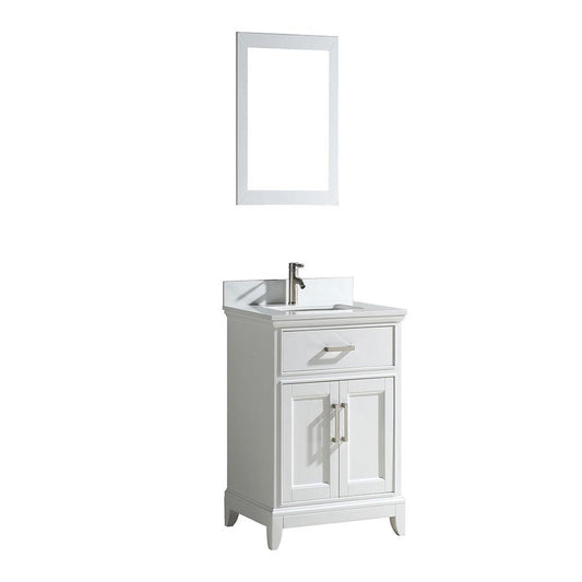 Vanity Art Genoa 24" Single White Freestanding Modern Bathroom Vanity Set With Super White Engineered Marble Top, White Ceramic Sink, Backsplash and Mirror