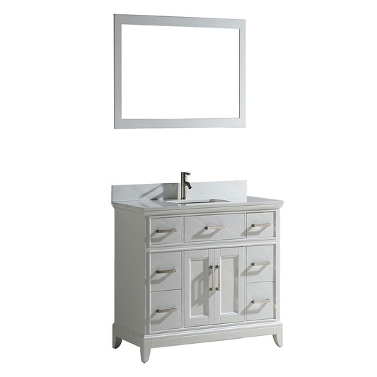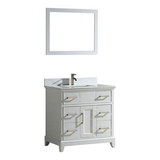 Vanity Art Genoa 36" Single White Freestanding Modern Bathroom Vanity Set With Super White Engineered Marble Top, White Ceramic Sink, Backsplash and Mirror
