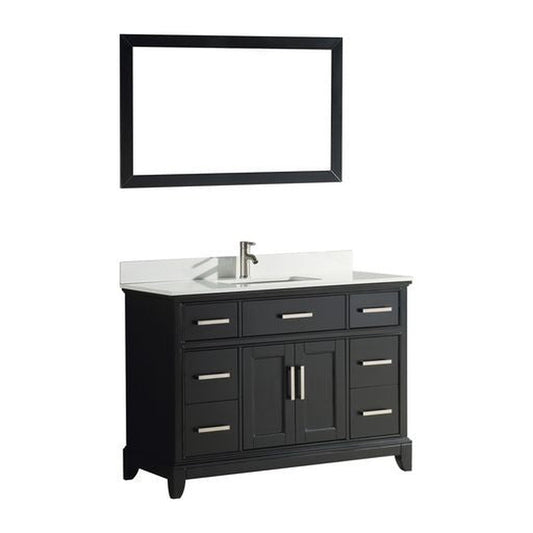 Vanity Art Genoa 48" Single Espresso Freestanding Modern Bathroom Vanity Set With Super White Engineered Marble Top, White Ceramic Sink, Backsplash and Mirror
