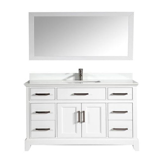 Vanity Art Genoa 60" Single White Freestanding Modern Bathroom Vanity Set With Super White Engineered Marble Top, White Ceramic Sink, Backsplash and Mirror