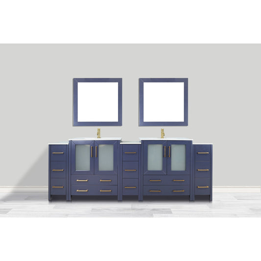 Vanity Art VA30 96" Double Blue Freestanding Ceramic Sink Modern Bathroom Vanity Set With Compact 2 Shelves, 13 Drawers Cabinet And 2 Mirrors