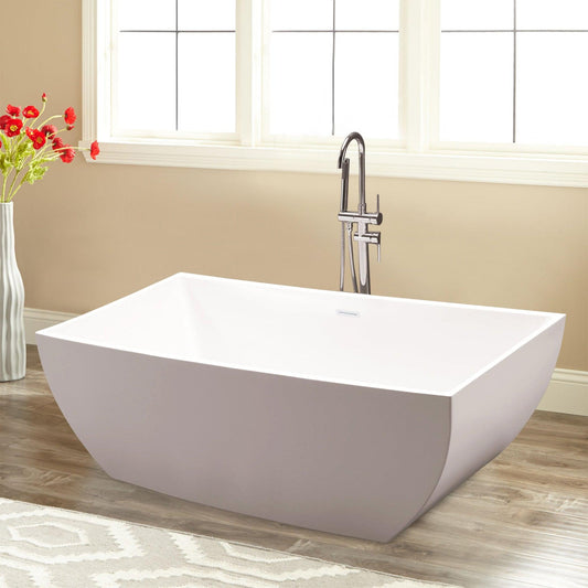 Vanity Art 59" x 22" White Acrylic Freestanding Contemporary Design Soaking Bathtub With Polished Chrome Slotted Overflow & Pop-up Drain